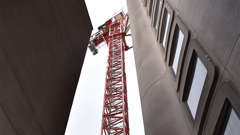 Walsh Brothers’ bold and unusual ideas and careful coordination of the work ensured minimal disruption to ongoing hospital operations. To do so, our team proposed a tower crane to be installed atop the adjacent building roof supported by the existing concrete structure in part, but also installing two structural steel “stilts” extending to the street to sit atop basement columns below and support the dunnage frame for the crane. The use of a tower crane would significantly reduce the impact of road closures for both ambulances, local residences and maintain all important Fire Department access to each building along Shattuck Street. This addressed the safety issue and as minimized street shutdowns and premium time staff costs from 20 weekends to two and allow for continuous live loading from the street below during weekdays. As added safety measures full height building staging and scaffold systems were designed to create a working platform and safety zone for this unique project site.