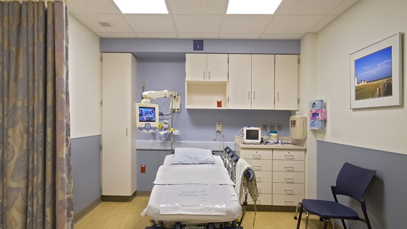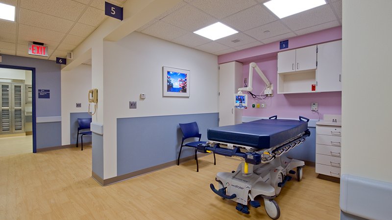 Phase 2 also involved the demolition of the hospital’s 68-year old Sturdy Building. Located at the center of the Sturdy Memorial campus, the three-story Sturdy Building provided the footprint to accommodate the new facility. Phase 3 involved the recession of all electrical, mechanical, and plumbing systems while simultaneously keeping the hospital’s services running without interruption. In Phase 4, a new two-story, 29,883 square-foot vertical expansion was constructed. The expansion houses an Endoscopy Department, Infusion Treatment Center, Emergency Care Center, hyperbaric suite, staff lounge/locker room, conference rooms, and support spaces.