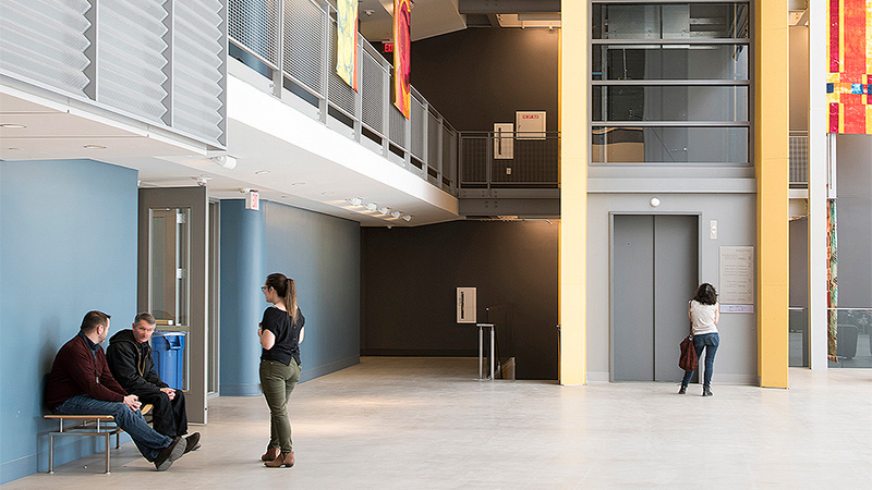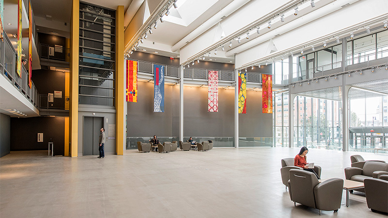 The creation of the Design and Media Center provides a memorable new entrance to the MassArt campus on the “Avenue of the Arts.” New pathways where physical barriers once existed now allow students, staff and visitors to move freely between buildings on campus. The new building transformed the under-used gym and tower space on the campus into flexible and collaborative space where the Design and Media program can continue to grow.
