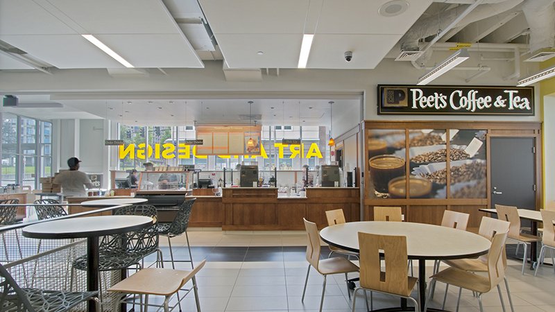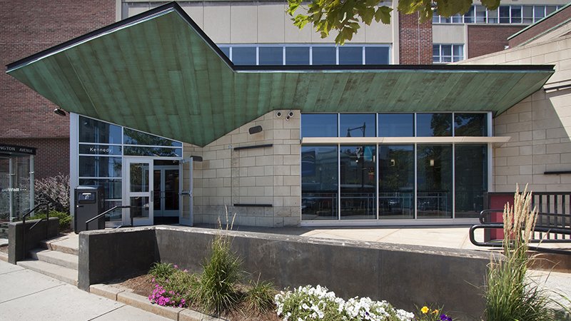 The Kennedy Campus Center is located on MassArt’s urban campus bordering Boston’s Longwood Medical Area. The Campus Center serves as a hub for student interaction, community activity, and informal learning. The renovation of and addition to Massachusetts College of Art and Design’s Kennedy Campus Center included a two-story glass addition along Longwood Avenue – a stark departure from the institution’s historically all-brick facade. This unique addition of transparency brings new life to the institution by exposing the social core of MassArt. The facility features a 1,500 square-foot expansion of the servery and dining area, renovations to the bookstore and art gallery space, and the addition of a café and art store, all of which are shared by the consortium of Colleges of the Fenway. The second floor incorporates an office fit-out and addition that houses varied student services such as health, counseling, and development offices. This defining new space for the college has received LEED Silver certification.