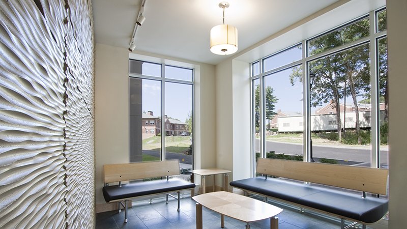 With a growing student enrollment and approximately 90 percent of Stonehill’s undergraduate students choosing to reside on campus, the need for additional student housing became essential. The new five-story suite-style residence project features 250 beds, with 6–10 students per suite in double- and single-occupancy rooms. Suites include bathrooms, kitchenettes, and a common living space. The building’s amenities include study rooms, a chapel, and laundry facilities.