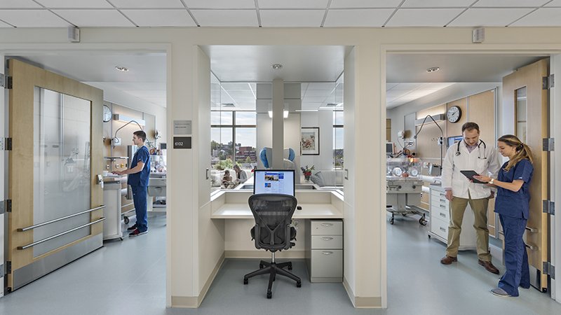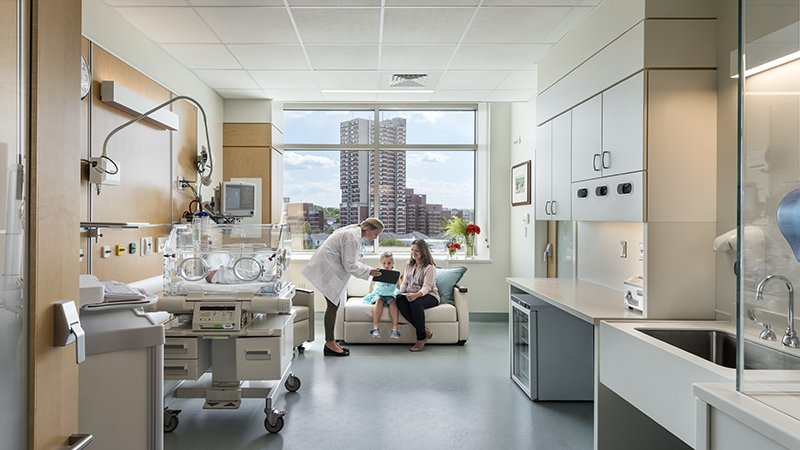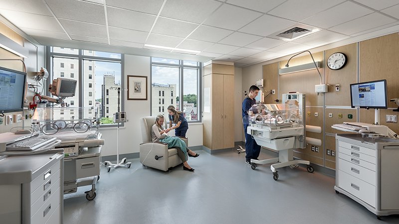 Once the addition was complete, Phase 2 included the renovation of the existing NICU space. A new air-handling unit, exterior facade, and an extensive green roof system were also included. The NICU helped Brigham and Women’s Hospital in its mission to enhance neonatal care with the implementation of the single-family room-care model by expanding the footprint of the available patient-dedicated space to allow for 50 private and semiprivate patient rooms.