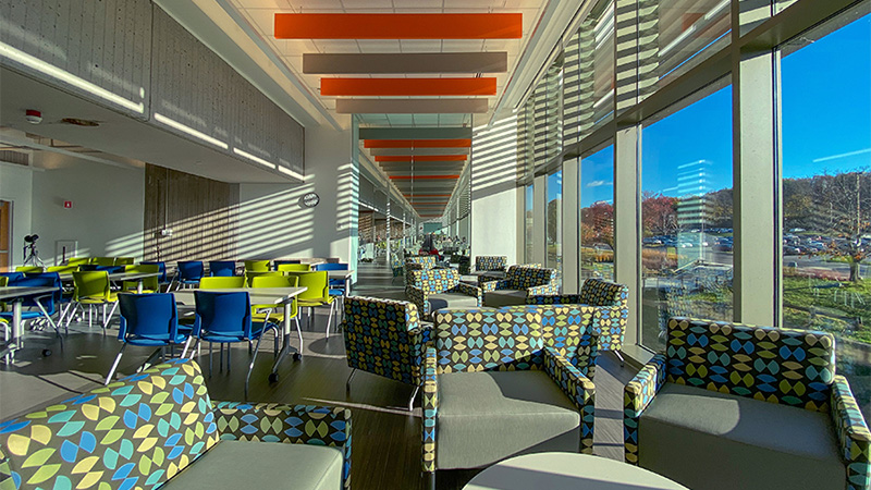 The Holyoke Community College (HCC) Campus Center/Building G was first built in the late 1970s and opened in the early 1980s as an architectural cast-in-place concrete structure with three stories, totaling about 59,000 GSF. The renovations to the Campus Center remedied an existing moisture infiltration issue and reconfigured the existing exterior envelope. It also provided new entryways, building systems, and a comprehensive renovation to the interior spaces. Also included in this project were the temporary fit up and relocation of the dining facility and bookstore.
